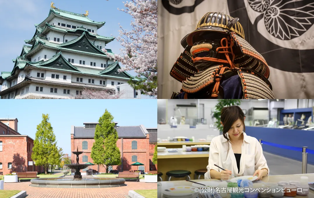 관광 노선버스 '메-구루'는 나고야성과 도쿠가와 가문의 귀중품들을 전시하는 도쿠가와 미술관, 섬유산업에서 시작해 세계적인 자동차산업으로 발전한 도요타의 발자취를 배울 수 있는 도요타 산업 기술 기념관, 시케미치의 역사적인 거리 등, 나고야의 주요 관광 스폿을 순회하는 버스입니다. 관광 시설에서 할인 등의 혜택도 받으실 수 있습니다.