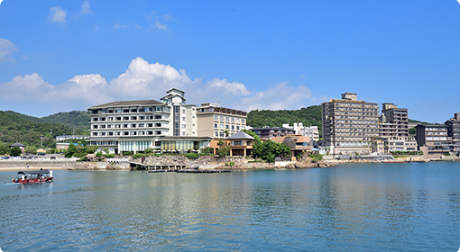 城下町として栄えた洲本市街地にある淡路島最大の温泉地。オーシャンビューの露天風呂などが魅力の老舗高級旅館などが海岸線に立ち並びます。