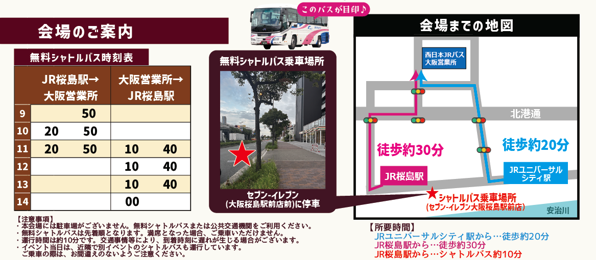 ※イベント当日、桜島駅前~大阪営業所の無料シャトルバスを運行します。