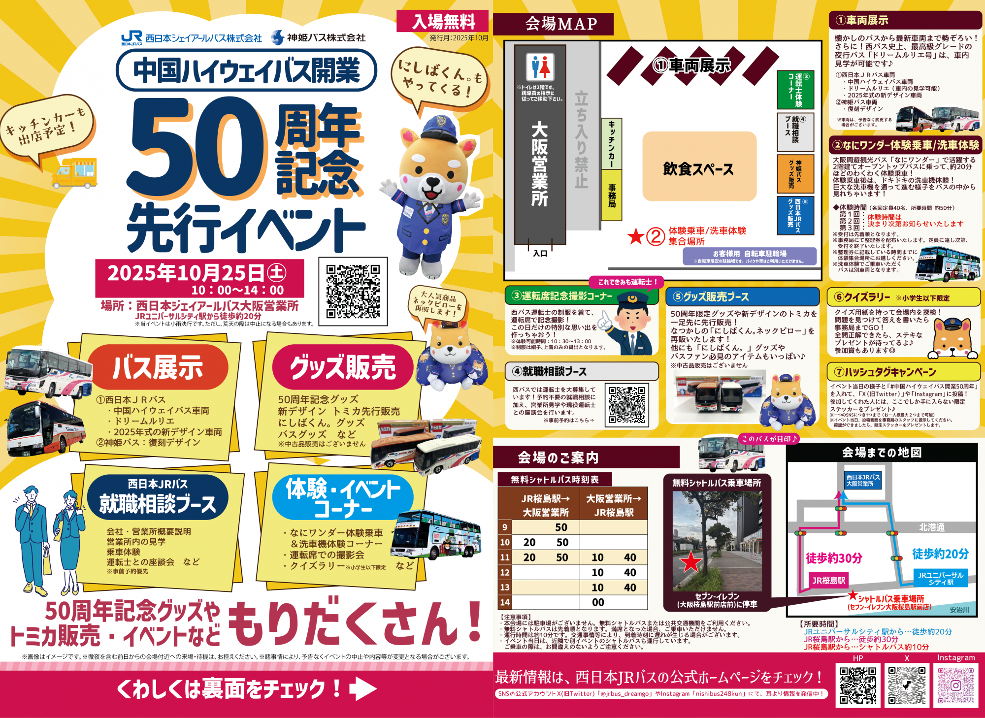 「中国ハイウェイバス開業50周年記念」大阪営業所にて先行イベント開催!!【10/9更新】