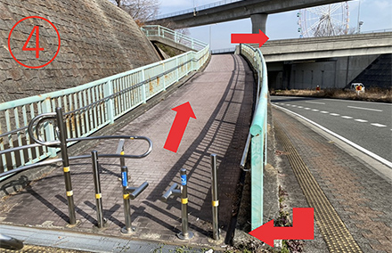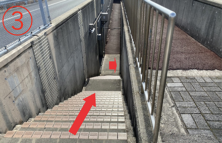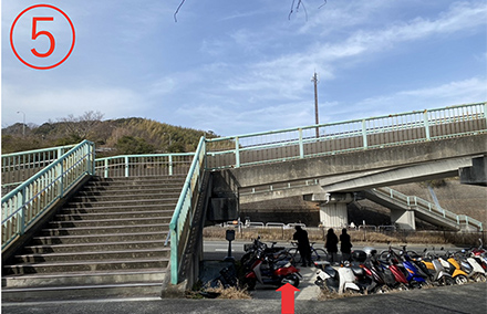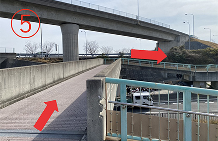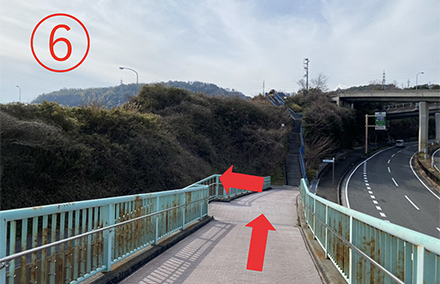 6.左手の階段から橋を降りる。