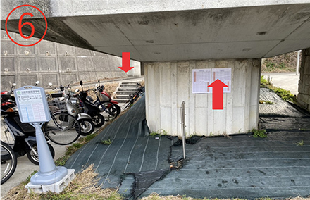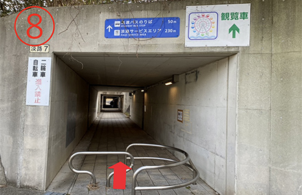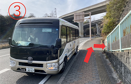 5.トンネル出口付近の階段を下ると無料シャトルバスの乗車場所。