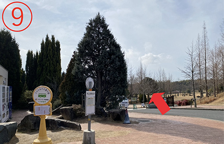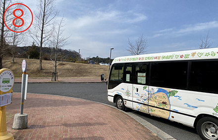 8.ニジゲンノモリF駐車場に到着。(帰りも同じバス停)