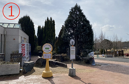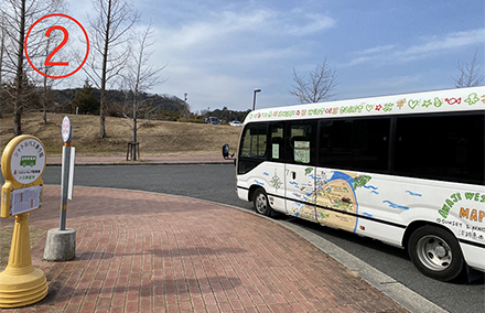 1.ニジゲンノモリF駐車場の無料シャトルバス乗り場。
