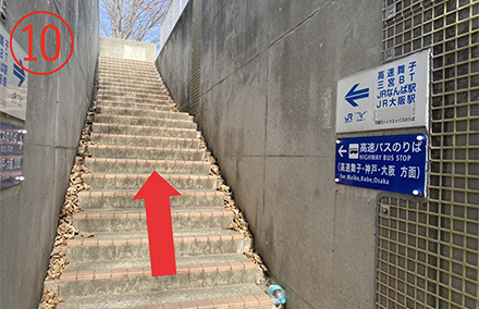 11.階段を上がると「淡路IC」バス停が見える。
