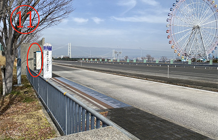 ニジゲンノモリF駐車場から「淡路IC」バス停までの道順(大阪/神戸方面の高速バス)