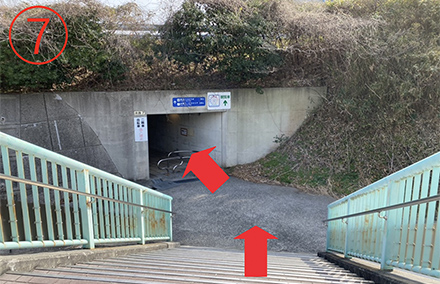 7.橋を降りると、トンネルが見える。