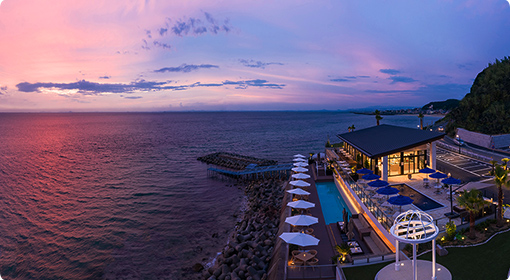 城下町として栄えた洲本市街地にある淡路島最大の温泉地。オーシャンビューの露天風呂などが魅力の老舗高級旅館などが海岸線に立ち並びます。