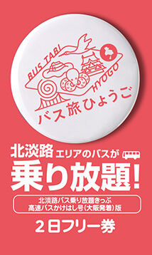 大阪エリアからの洲本温泉までの「かけはしニジゲンノモリ号・ニジゲンノモリ洲本温泉号」の往復乗車券と「淡路市生活観光バス乗り放題券」がセットになったおトクな企画乗車券です。(2日間有効)