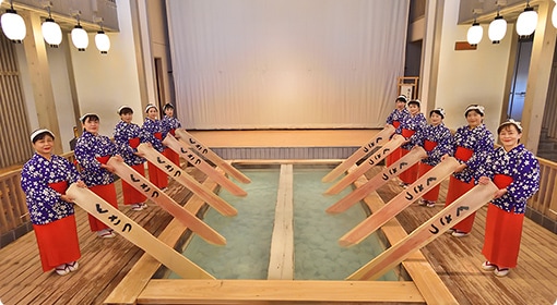 熱乃湯では、草津に江戸時代から伝わる独特な入浴法「湯もみ」の体験コーナーや「湯もみと踊り」ショーを行っており、草津温泉の伝統を肌で感じることができます。