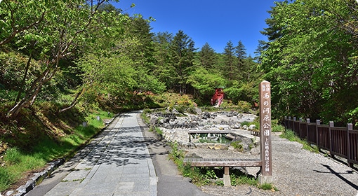河原のあちこちから温泉が湧き出す湯の川となっており、草津温泉ならではの温泉情緒あふれる散策コースになっています。また、周辺には西の河原露天風呂があり、四季折々の風景を肌で感じることができます。
