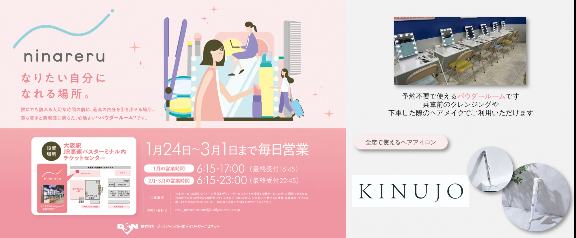 大阪駅JR高速バスターミナルの待合室内に、期間限定で、女性専用のパウダースペースを設置いたします。(運営:株式会社ジェイアール西日本デイリーサービスネット)
